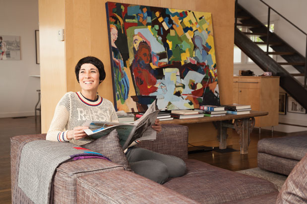 Her buying approach is all about an emotional connection. “If I see a piece somewhere, leave, and then find myself really missing it, I look into whether I can afford it,” she says. “If I like it at the moment but never think about it afterward, that tells me a lot.” Often the connection grows deeper over time, as with the large oil painting by Joel Fleminger in the living room. “The longer I have it, the more I love it,” Landes says. The piece is propped up and unframed (Landes says art shouldn’t be like jewelry that’s too fancy to wear—you have to live with it) and deliberately placed in front of the television. “It’s heavy enough that we don’t move it too often,” she says, “which means we don’t watch junk TV—we have to come to the television with a plan.” It proves more inspiring than TV, too. “We’re always looking at and talking about it,” she says. “It definitely generates thought and wonder.”